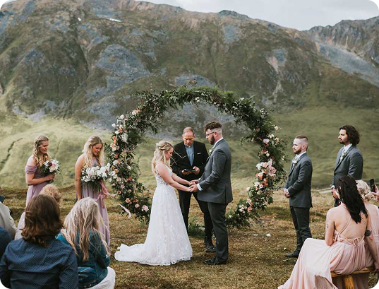 The hand fasting ceremony is a Celtic tradition where the couples stand face to face as their hands are tied together by 12 ribbons and 1 cord that each stand for a different part of their marriage to each other. As your hands are bound, you can recite words that express your commitment of eternal love to one another (an additional fee for materials applies).